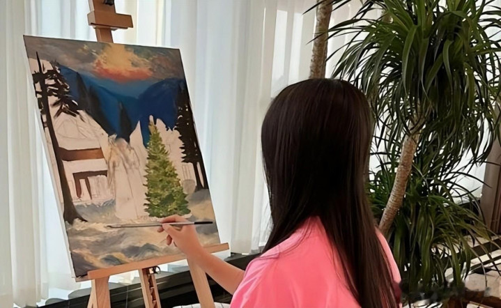 由于王诗龄酷爱绘画,因此在圣诞节的时候画了一副有关于圣诞的艺术画,还因此获得了学校颁发的艺术奖。